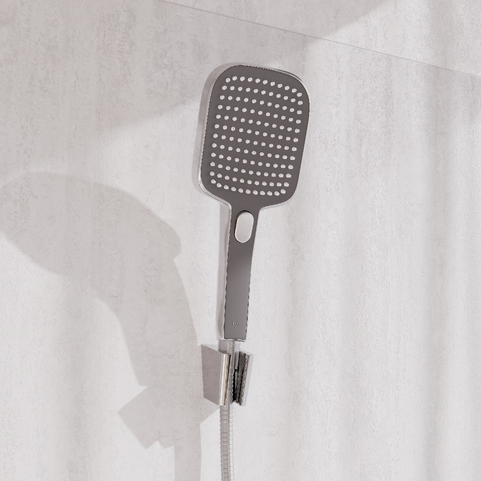 • Переключение режимов осуществляется красивой удобной кнопкой. Кнопка не утоплена, а чуть выступает над поверхностью лейки – чтобы было комфортно, в том числе, девушкам с длинными ногтями.