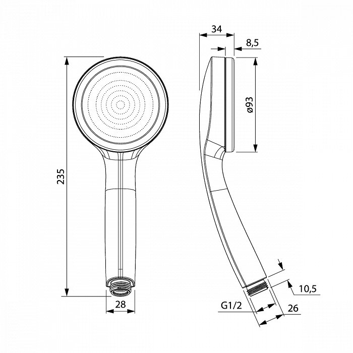 Лейка для душа из ABS-пластика с лицом из 304 нержавеющей стали, 1 режим (Relax = 355 отверстий), разборный механизм лейки, диаметр 95 мм, цвет - хром. В комплекте: сменный диск из 304 нержавеющей стали, с режимом