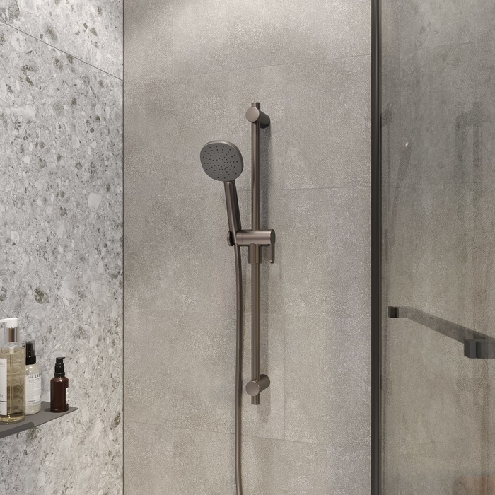 Цветные стойки из коллекции Ray имеют универсальный дизайн и могут быть установлены как над ванной, так и в зоне душевого ограждения. Изделие можно закрепить на уже имеющихся отверстиях в стене или выбрать подходящую точку крепежа – за счет свободных креплений стойки, которые можно установить на любой высоте. Держатель-слайдер легко перемещается вверх-вниз по стойке, позволяя отрегулировать положение лейки и высоту подачи воды – индивидуально для каждого члена семьи. Богатая цветовая гамма коллекции поможет воплотить любые, даже нестандартные, дизайнерские решения. Стойка Ray в графитовом оттенке подойдет для комплектации душевых леек в тон и станет запоминающимся акцентом современного интерьера ванной. Крепления входят в комплект.