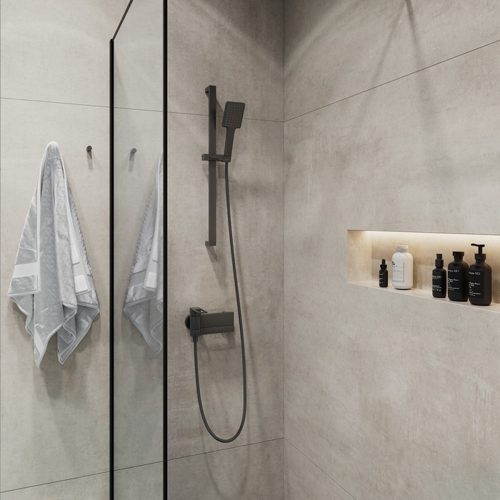 Коллекция цветных стоек для душа Slide предназначена для тех, кто выбирает функциональный минимализм и чистые формы. Квадратная стойка в трендовом оттенке графит станет ярким акцентом в любом современном интерьере благодаря четким прямым линиям и эргономичному дизайну. Подойдет как для установки над ванной, так и в зоне душевого ограждения. Кнопочный держатель с регулируемым углом наклона лейки позволяет удобно отрегулировать ее положение, что сделает гарнитур простым и удобным в каждодневном использовании.