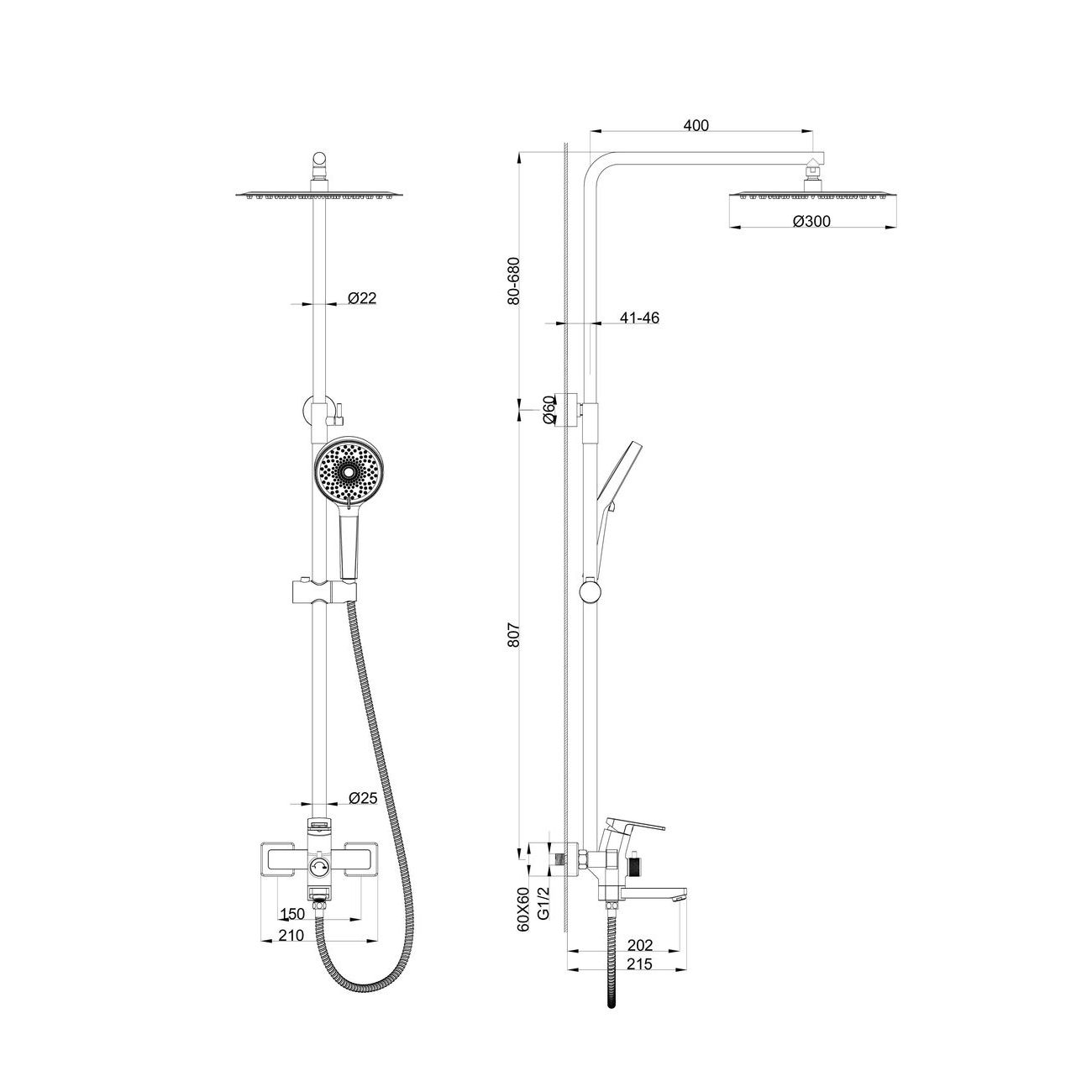 Душевая система Wonzon & Woghand Stick WW-88739017-CR хром