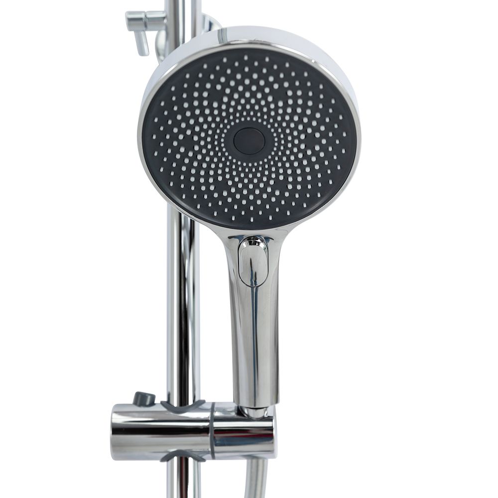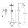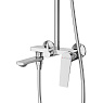 Оснащение: эксцентрики, переключатель потоков, душевой шланг ПВХ длиной 150 см, ручной душ 3-х режимный, верхний душ, смеситель с поворотным изливом