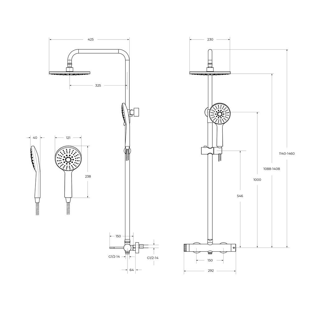 Дополнительная информация: регулируемая высота верхнего душа