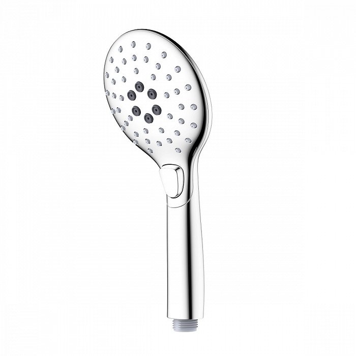 Ручная лейка с 3 режимами (Rain, Massage, Rain&Massage), кнопочное переключение режимов, цвет хромированный, диаметр 110 мм.