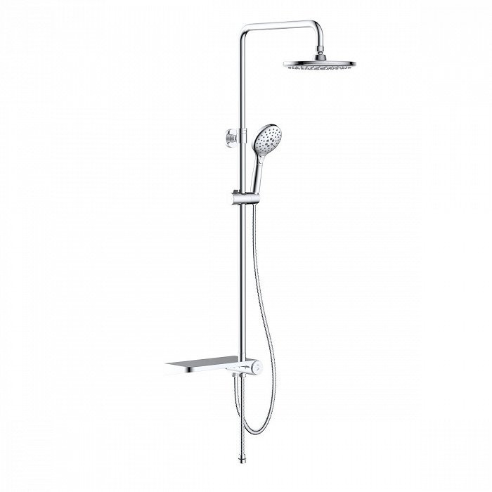 Душевой гарнитур с верхней лейкой. Хромированная полка и хромированные лейки.