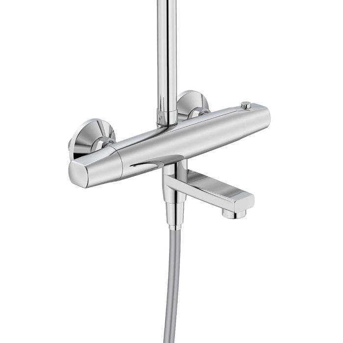 - Смеситель для ванны Torr с термостатом и верхним душем – универсальный дизайн при современном функционале, оптимальный для городской квартиры и загородного дома. Термостат позволяет сэкономить время на настройке нужной температуры воды при каждом включении, при этом полностью защищает от ожогов, связанных с перепадами давления и температуры воды в сети. Две лейки большого диаметра – верхняя Ø229 мм и ручная Ø110 мм – создают объемный и приятный для тела поток воды. Смеситель привнесет максимум комфорта в привычные душевые процедуры. В комплекте гибкий душевой шланг с защитой от перекручивания и крепеж. • Регулируемая высота стойки (1,2-1,4 м) позволяет с комфортом принимать душ даже самым высоким. • Керамический дивертор переключается поворотом излива и надежно переключает поток воды на верхнюю и ручную лейки или обеспечивает их одновременную работу в комбинированном режиме. Гарантия на смесители IDDIS® – 10 лет, на душевые аксессуары – 3 года.