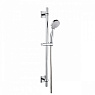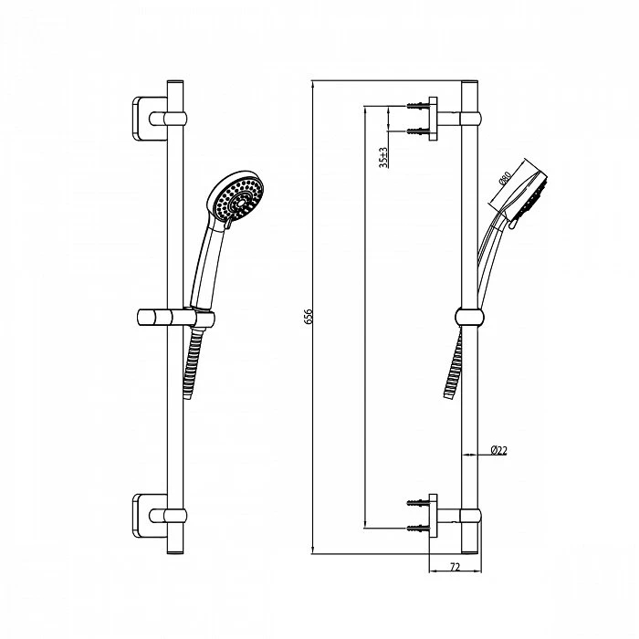 Душевой гарнитур. Стойка для душа, нержавеющая сталь с никель-хромовым покрытием, высота 650 мм, диаметр 22 мм. Оба крепления свободные. Держатель лейки из ABS-пластика, поворотное крепление, регулировка наклона лейки. Лейка для душа из ABS-пластика, диаметр 80 мм, 3 режима (Дождь, Массаж, Дождь&Массаж). Шланг для душа ПВХ в оплетке из нержавеющей стали, 1,5 метра, с системами Double Lock и Twist Free. В комплекте: крепеж.