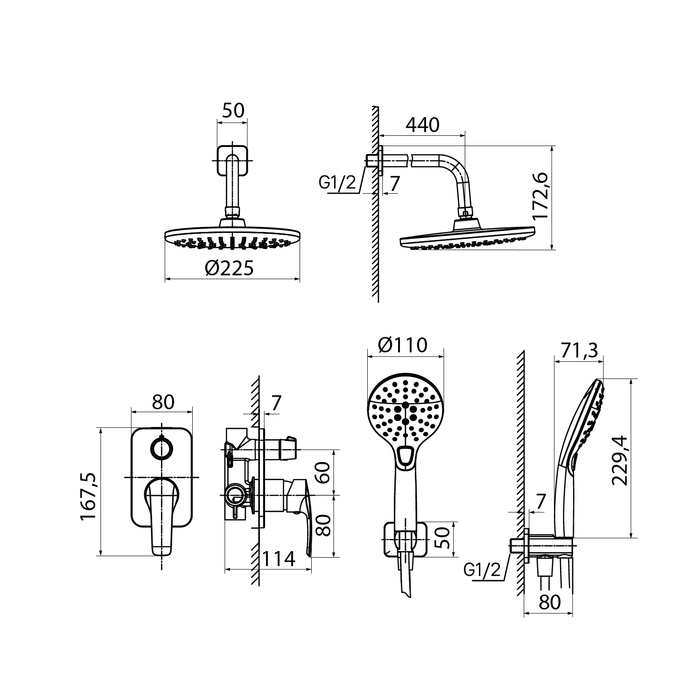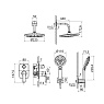 • Оптимальная подборка сантехники Ray: смеситель, верхняя лейка с кронштейном для тропического душа, большая ручная лейка с 3 режимами, душевой шланг 1,5 м и выход для подключения шланга с держателем для лейки.