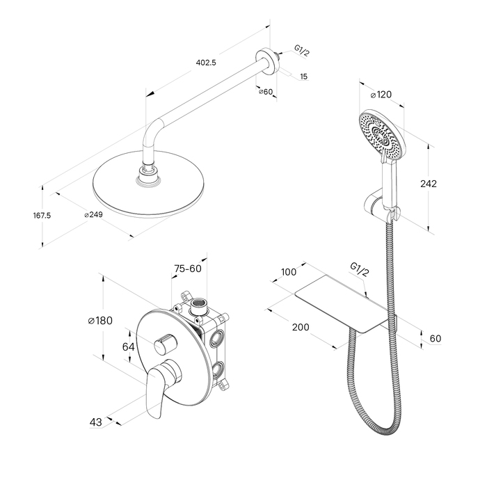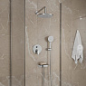 Душевая система Rora создана для тех, кто отдает предпочтение пространству, где нет ничего лишнего. С ней легко реализовать наиболее интересные дизайнерские проекты: так, например, панель управления, верхнюю и ручную лейки можно разнести по разным стенам. Все внутренние механизмы системы будут спрятаны внутри встраиваемого монтажного блока, видимыми останутся только элементы управления. Душевая система на два выхода предназначена для подключения двух точек водопотребления: ручного и тропического душа.