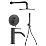 - Комплект KITLIG015NO071 со смесителем для раковины LIG071NO, смеситель для душа LIG015NO на 2 выхода, душ 225мм, LIGHT, черный матовый Paffoni
