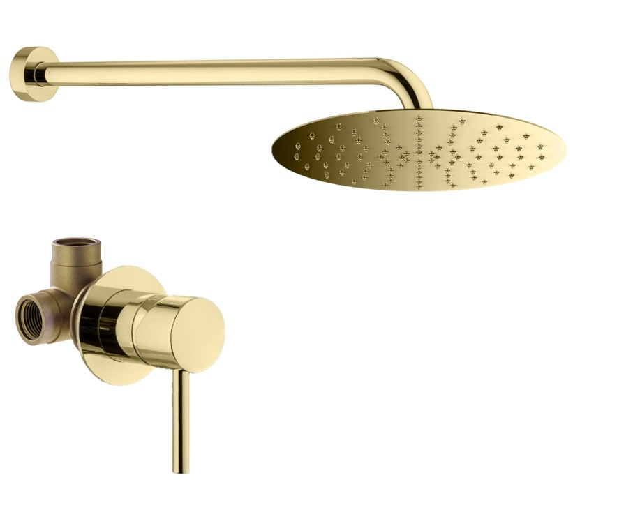 Состав комплекта:SAT3130OR Настенное крепление верхнего душа 400мм из нержавеющей стали, золото, Plumberia SelectionSAT3174OR Верхний душ d. 250 из нержавеющей стали, встроенный клапан безопасности, поворотное крепление, антикальций, 2мм, золото, Plumberia SelectionKITXO1135OR Комплект встраиваемого смесителя для душа, 1 выход, накладка d. 70мм, внутренняя часть INT1135 в комплекте, золото IXO, Plumberia Selection.