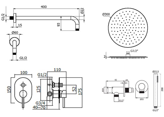 Состав комплекта:KIT1001CR Комплект встраиваемого смесителя для душа с внутренней частью, 2 выхода, накладка 100х150мм, девиатор кнопочный, хром IXO, Plumberia SelectionHST3018CR Комплект ручного душа, водорозетка с запорным клапаном и держателем, душ латунь 1 режим антикальц., шланг PVC 1500мм, хром, Plumberia SelectionSAT3130CR Настенное крепление верхнего душа 400мм из нержавеющей стали, хром, Plumberia SelectionSAT3178CR Верхний душ d. 300 из нержавеющей стали, встроенный клапан безопасности, поворотное крепление, антикальций, 2мм, хром, Plumberia Selection.