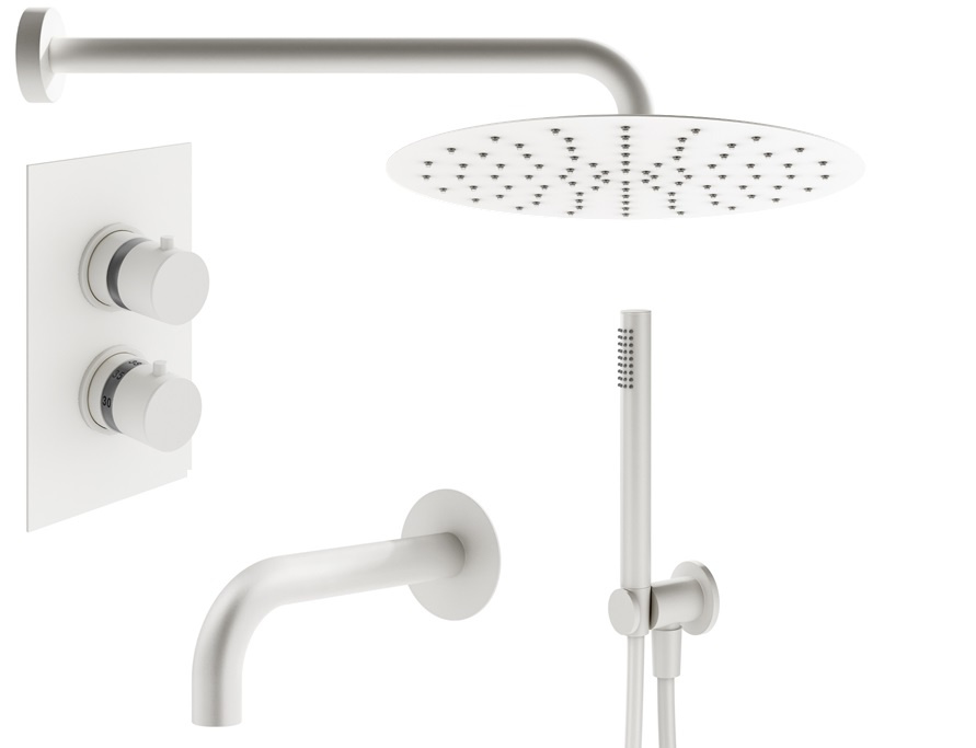 Душевой комплект Plumberia Selection Ixo KITXOT19QBO260 для ванны, c термостатическим смесителем, белый матовый
