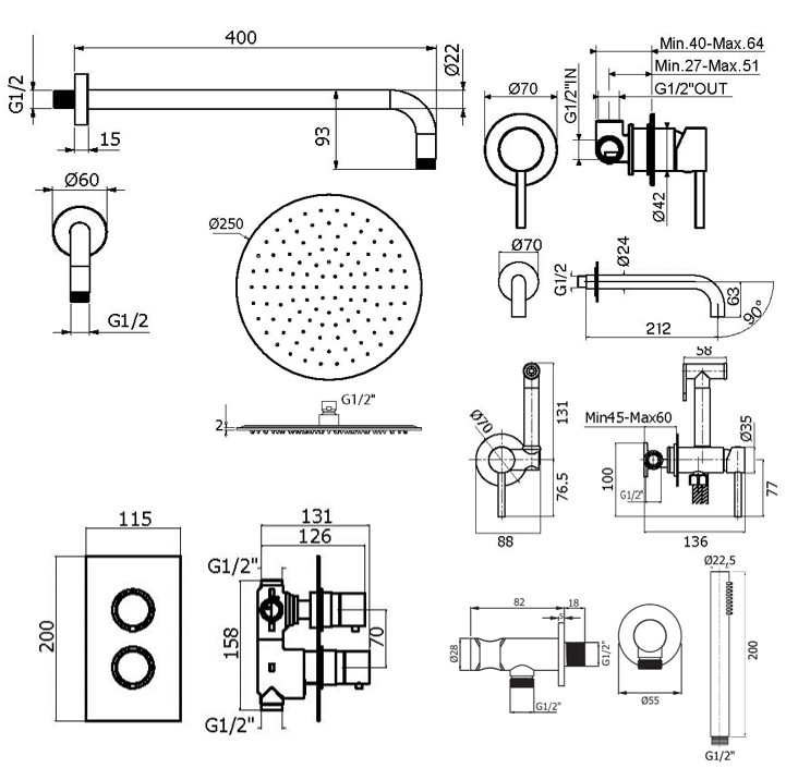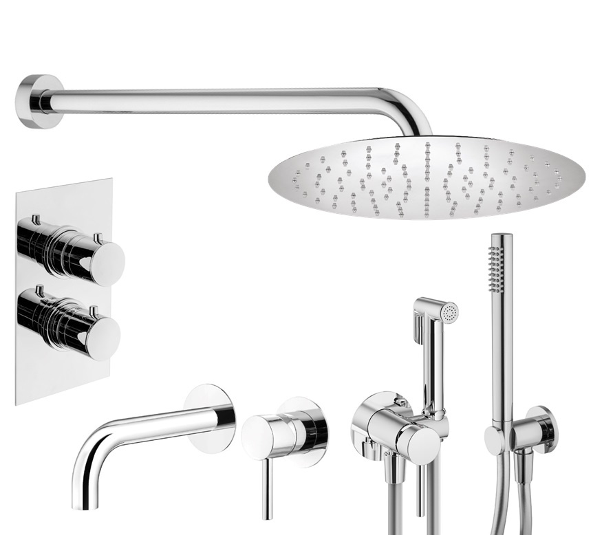 Состав комплекта:XO2000CR Комплект гигиенического душа IXO со смесителем, душ и держатель из металла, шланг PVC 1250мм, хром IXO, Plumberia SelectionKITXO1135CR210 Комплект встраиваемого смесителя для раковины, излив 210мм, накладка диам. 70мм, внутренняя часть INT1135 в комплекте, хром IXO, Plumberia Sel XOT5020CR Смеситель термостат встраиваемый для душа 2 выход в комлекте со встраиваемой частью, накладка из нержавеющей стали, хром, Plumberia SelectionHST3018CR Комплект ручного душа, водорозетка с запорным клапаном и держателем, душ латунь 1 режим антикальц., шланг PVC 1500мм, хром, Plumberia SelectionSAT3130CR Настенное крепление верхнего душа 400мм из нержавеющей стали, хром, Plumberia SelectionSAT3174CR Верхний душ d. 250 из нержавеющей стали, встроенный клапан безопасности, поворотное крепление, антикальций, 2мм, хром, Plumberia Selection.