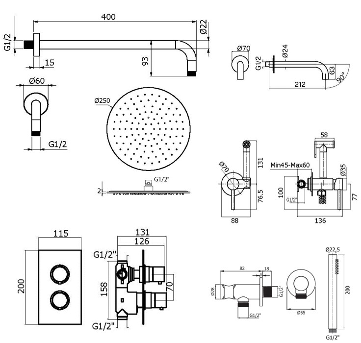 Состав комплекта:XO2000NO Комплект гигиенического душа IXO со смесителем, душ и держатель из металла, шланг PVC 1250мм, черный матовый IXO, Plumberia SelectionSPT0060NO Излив для ванны встраиваемый d. 24, 210 мм, подкл. 1/2' с латунной накладкой d. 70, черный матовый IXO, Plumberia SelectionXOT5030NO Смеситель термостат встраиваемый для душа 3 выхода в комплекте со встраиваемой частью, накладка из нержавеющей стали, черный матовый, Plumberia SelectionHST3018NO Комплект ручного душа, водорозетка с запорным клапаном и держателем, душ латунь 1 режим антикальц., шланг PVC 1500мм, черный матовый, Plumberia SelectionSAT3130NO Настенное крепление верхнего душа 400мм из нержавеющей стали, черный матовый, Plumberia SelectionSAT3178NO Верхний душ d. 300 из нержавеющей стали, встроенный клапан безопасности, поворотное крепление, антикальций, 2мм, черный матовый, Plumberia Selection.
