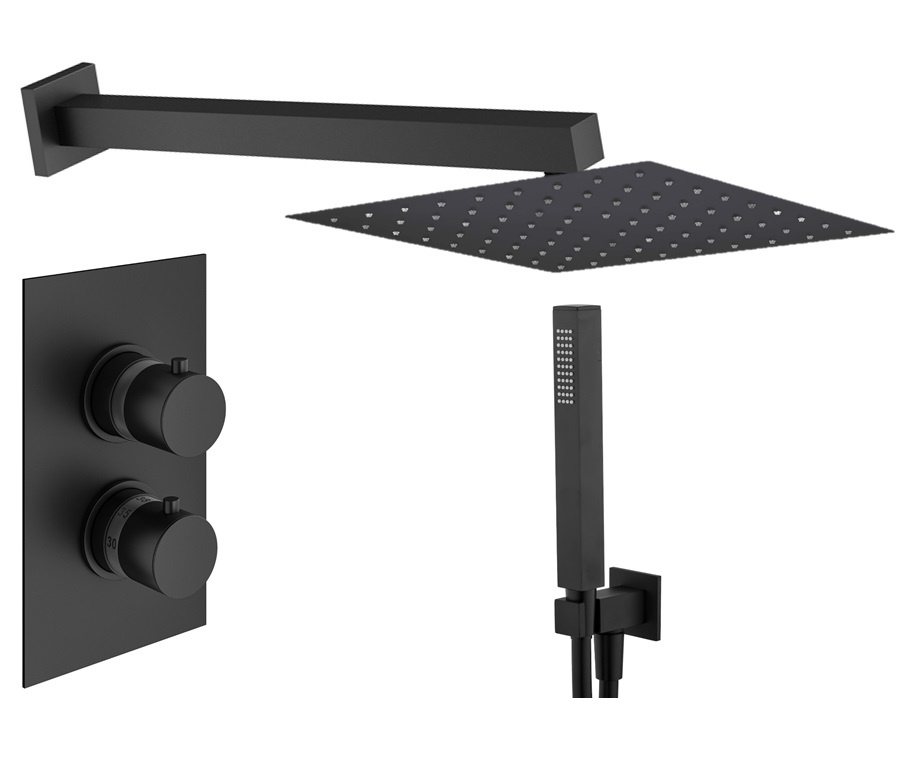 Душевой комплект Plumberia Selection Tag KITTGT18QNO для ванны, c термостатическим смесителем, черный матовый