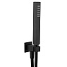 HST3108NO Комплект ручного душа, водорозетка с запорным клапаном и держателем, душ квадратный латунь 1 режим антикальц., шланг PVC 1500мм, черный матовый, Plumberia Selection