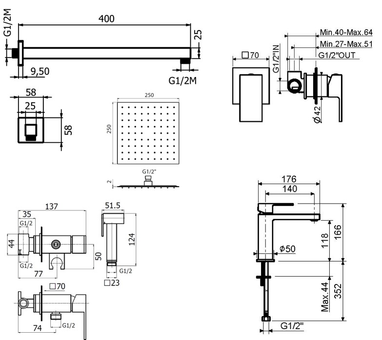KITTG1135CR Комплект встраиваемого смесителя для душа, 1выход, накладка 70X70мм, внутренняя часть INT1135 в комплекте, хром TAG, Plumberia Selection