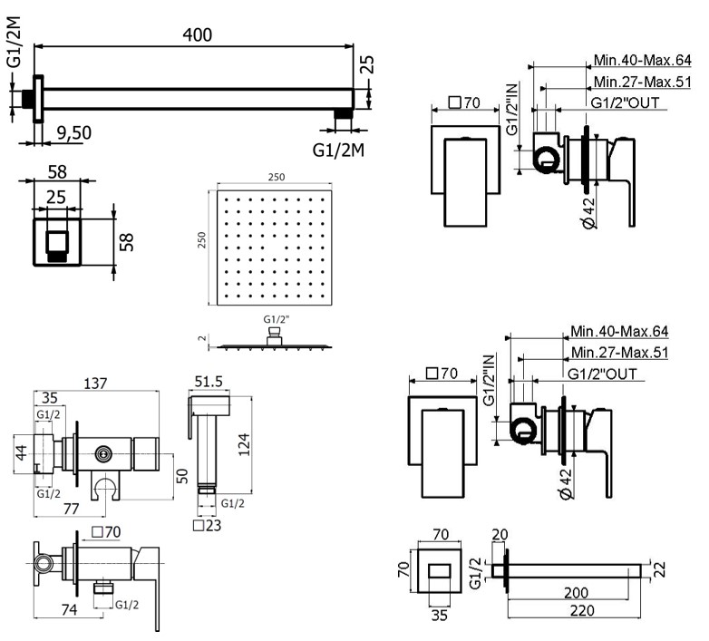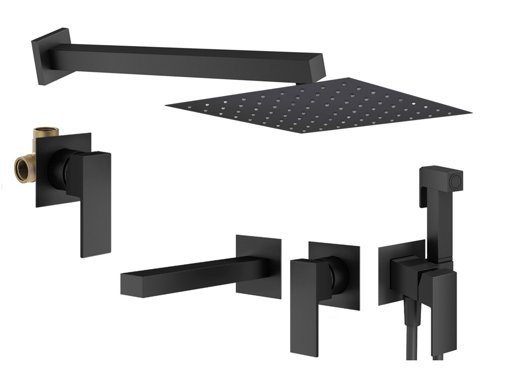KITTG1135NO Комплект встраиваемого смесителя для душа, 1выход, накладка 70X70мм, внутренняя часть INT1135 в комплекте, черный матовый TAG, Plumberia Selection