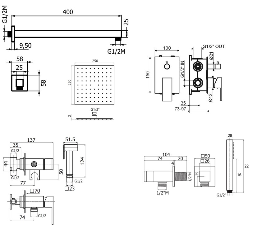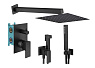 KITTG1901NO Комплект встраиваемого смесителя для душа с внутренней частью INT9036 на 2-3выхода, накладка 100X150mm нержавеющая сталь, механический девиатор, черный матовый TAG, Plu HST3108NO Комплект ручного душа, водорозетка с запорным клапаном и держателем, душ квадратный латунь 1 режим антикальц., шланг PVC 1500мм, черный матовый, Plumberia Selection