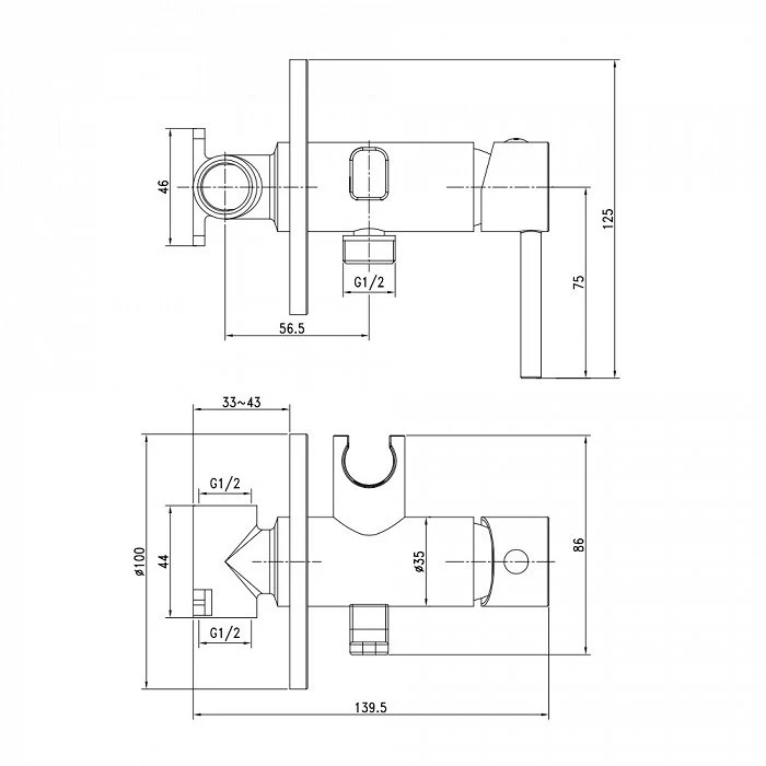 Встраиваемый смеситель с гигиеническим душем и крючком для полотенца, круглый, однозахватный, латунь, керамический картридж Softap. В комплекте: шланг 1.2м, гигиеническая лейка ABS-пластик. Упаковка: картонная коробка, индивид мешок.
