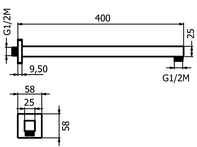 Кронштейн для верхнего душа Plumberia Selection Shower SAQ3122CR хром Настенное крепление верхнего душа 400мм из нержавеющей стали, хром