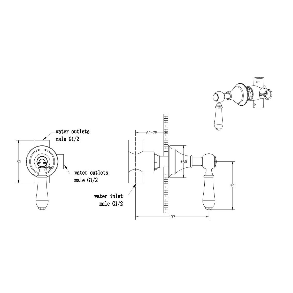 Переключатель потоков Boheme Imperiale 623-CRST для ванны с душем, золото/Cristal