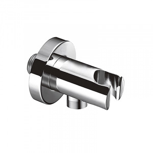 Выход для шланга с держателем для лейки для встраиваемой системы, круглое основание, материал латунь, цвет хром, хромоникелевое покрытие.