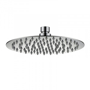 Душевая насадка верхняя, круглая, материал нержавеющая сталь (тонкая), диаметр 200 мм, серая лицевая пластина, темно-серые форсунки.