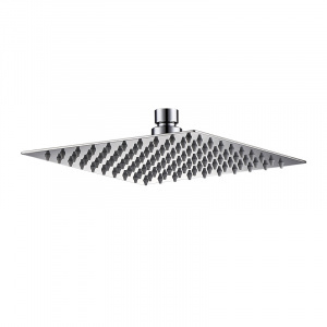 Душевая насадка верхняя, квадратная, материал нержавеющая сталь (тонкая), размер 200х200 мм, серая лицевая пластина, темно-серые форсунки.