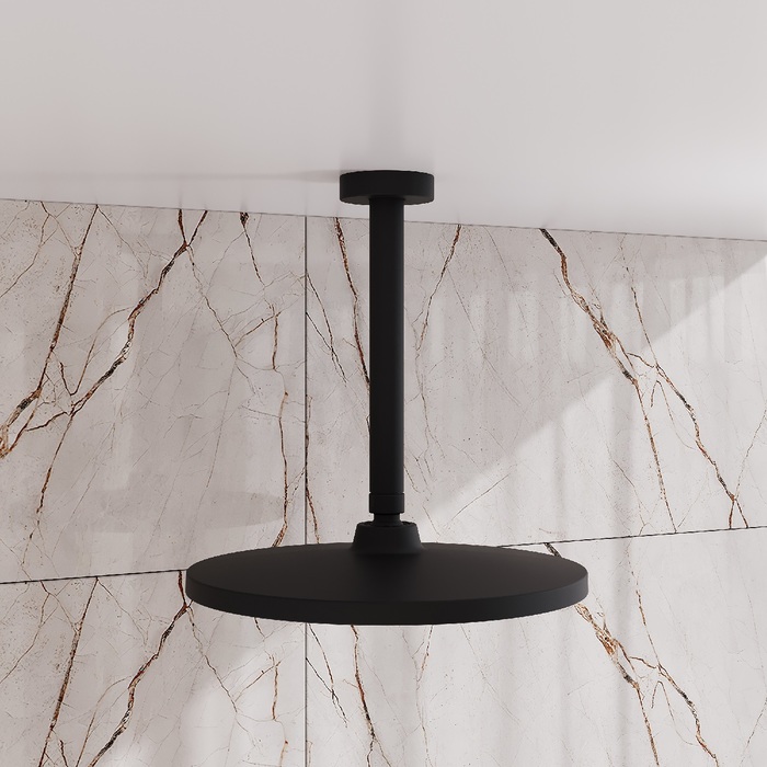 Черная матовая круглая верхняя лейка для тропического душа Esper станет отличным дополнением для встраиваемой душевой системы или заменит надоевшую лейку душевого гарнитура. За счет большого диаметра 256 мм лейка создает объемный поток воды, достаточный для комфортного принятия душа. Подходит ко всем кронштейнам со стандартным резьбовым соединением G 1/2”.