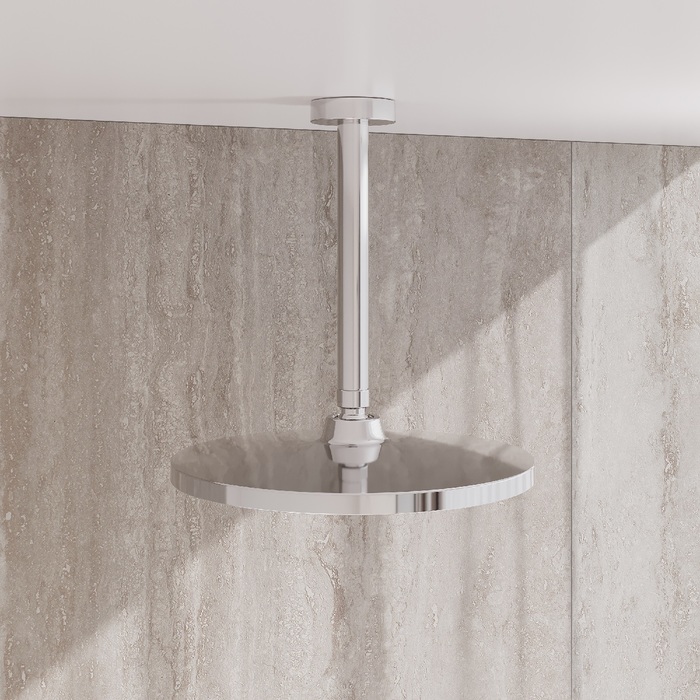 Хромированная круглая верхняя лейка для тропического душа Esper с белой лицевой частью станет отличным дополнением для встраиваемой душевой системы или заменит надоевшую лейку душевого гарнитура. За счет большого диаметра 256 мм лейка создает объемный поток воды, достаточный для комфортного принятия душа. Подходит ко всем кронштейнам со стандартным резьбовым соединением G 1/2”.