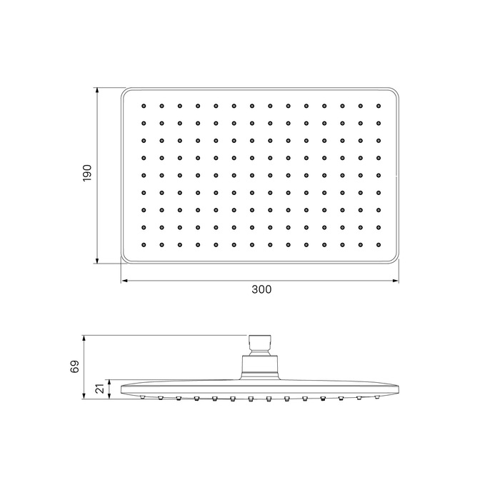 Квадратная душевая насадка Slide придется по вкусу тем, кто выбирает функциональный минимализм и чистые формы. Вместе со смесителем в тон она поможет создать тропическую душевую зону и станет отличной альтернативой классическому душу. Большая (300х190 мм) насадка с продуманным строением форсунок обеспечит комфортный напор даже при минимальном давлении воды, шарнирное крепление – позволит удобно отрегулировать ее положение.