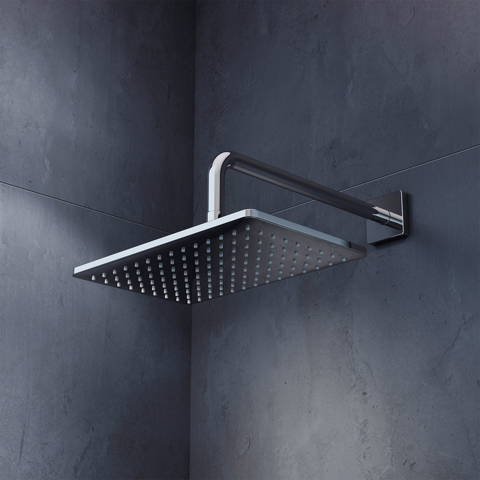 Квадратная душевая насадка Slide придется по вкусу тем, кто выбирает функциональный минимализм и чистые формы. Вместе со смесителем в тон она поможет создать тропическую душевую зону и станет отличной альтернативой классическому душу. Большая (300х190 мм) насадка с продуманным строением форсунок обеспечит комфортный напор даже при минимальном давлении воды, шарнирное крепление – позволит удобно отрегулировать ее положение.