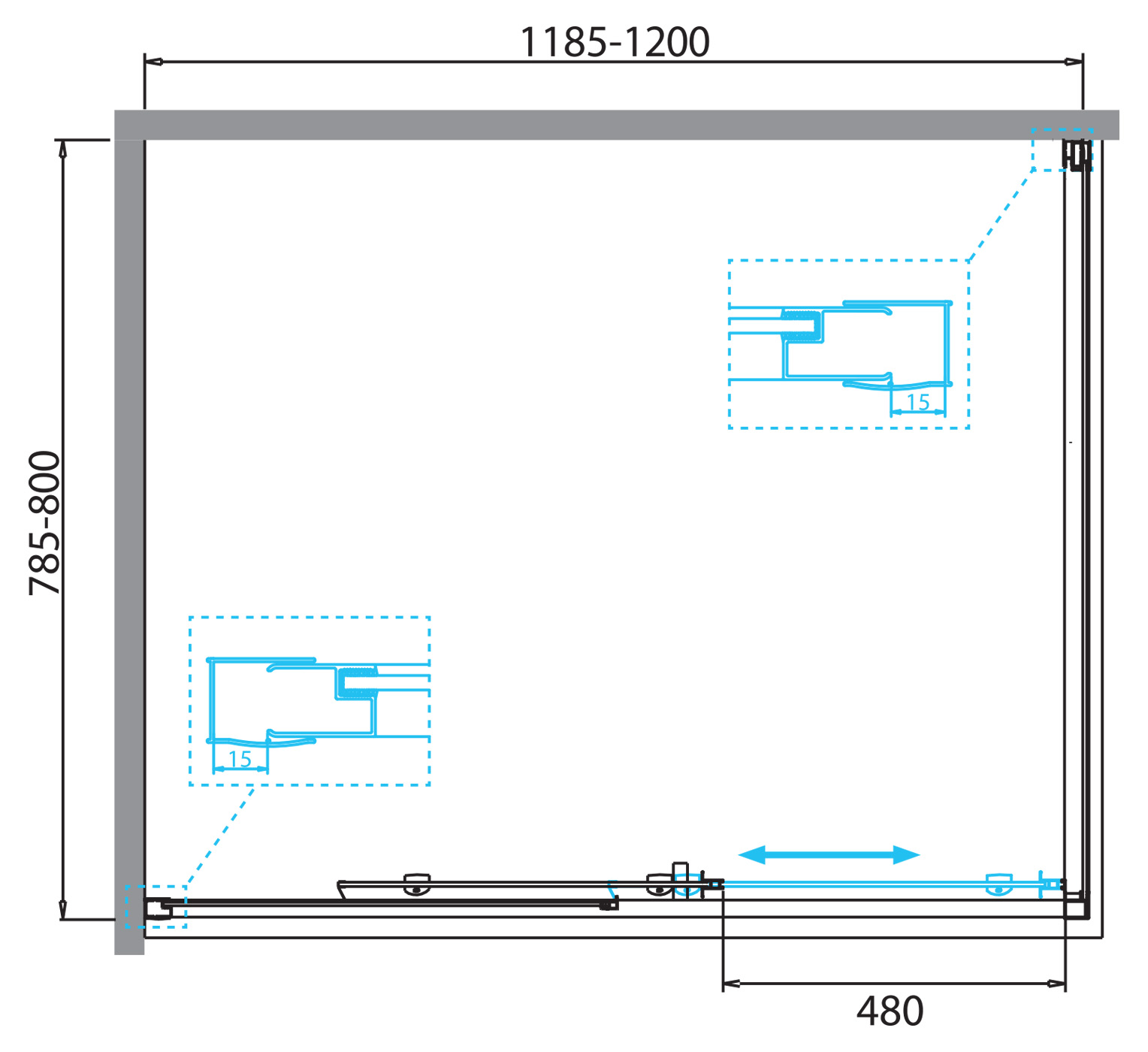 Регулировка ширины: предусмотрена за счет боковых профилей