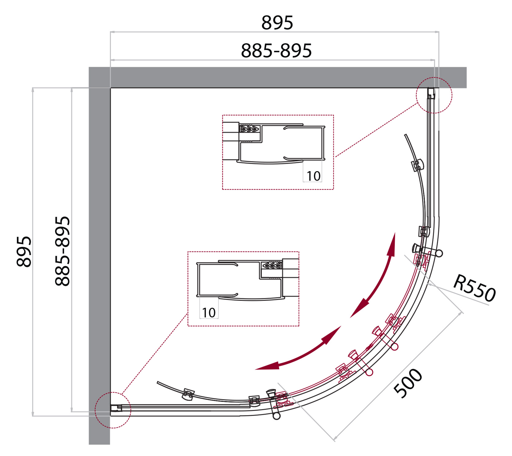 Регулировка ширины: предусмотрена за счет боковых профилей