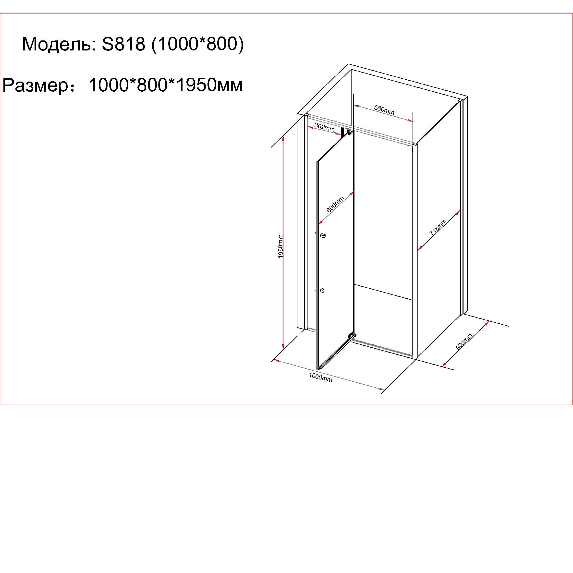 Душевой уголок Black & White Stellar Wind S818 BG-1000x800 тонированное/черный матовый