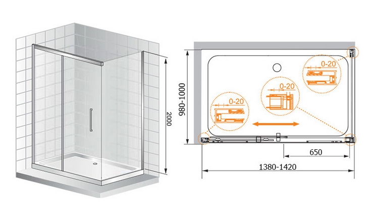 Душевой уголок, прямоугольный