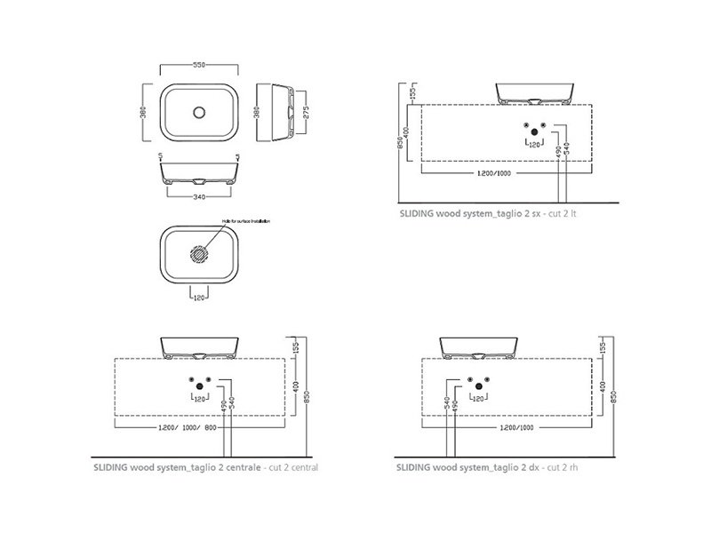 - H.HOUR 18.00 S Раковина накладная, без отверстий для смесителя, 55x38 см, черный матовый