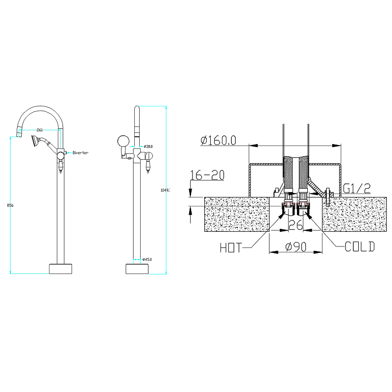 Смеситель Boheme Medici 309 для ванны с душем, напольный, бронза