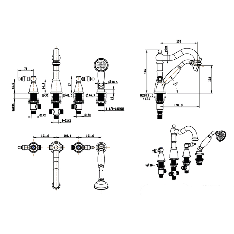 Смеситель Boheme Tradizionale oro 395-SW на борт ванны, золото/Swarovski