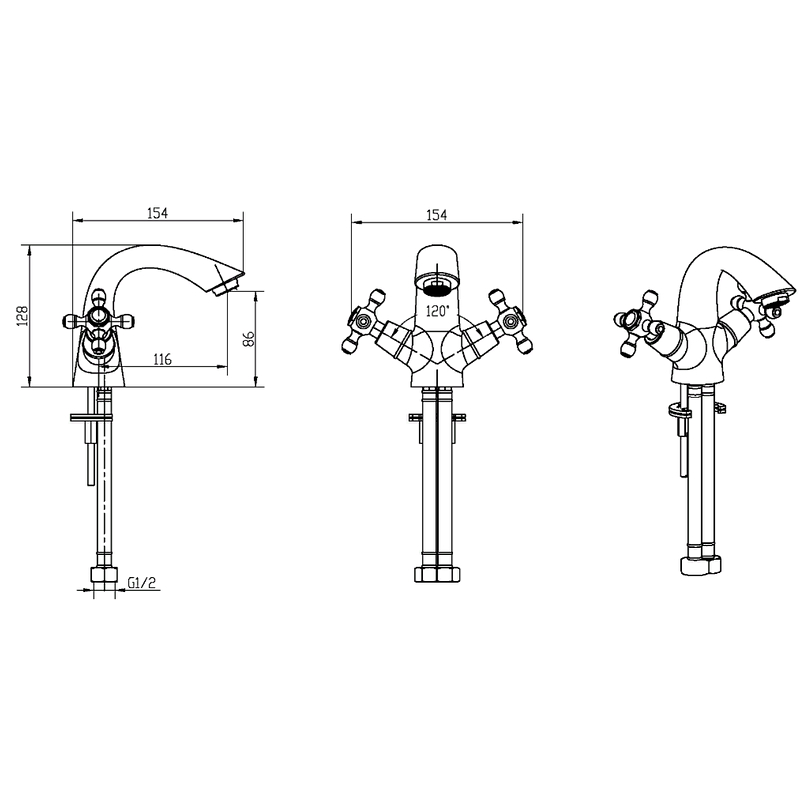 Смеситель Boheme Tradizionale oro 291 для раковины, золото Комплект поставки: - смеситель, - гибкая подводка G1/2, - крепежный комплект