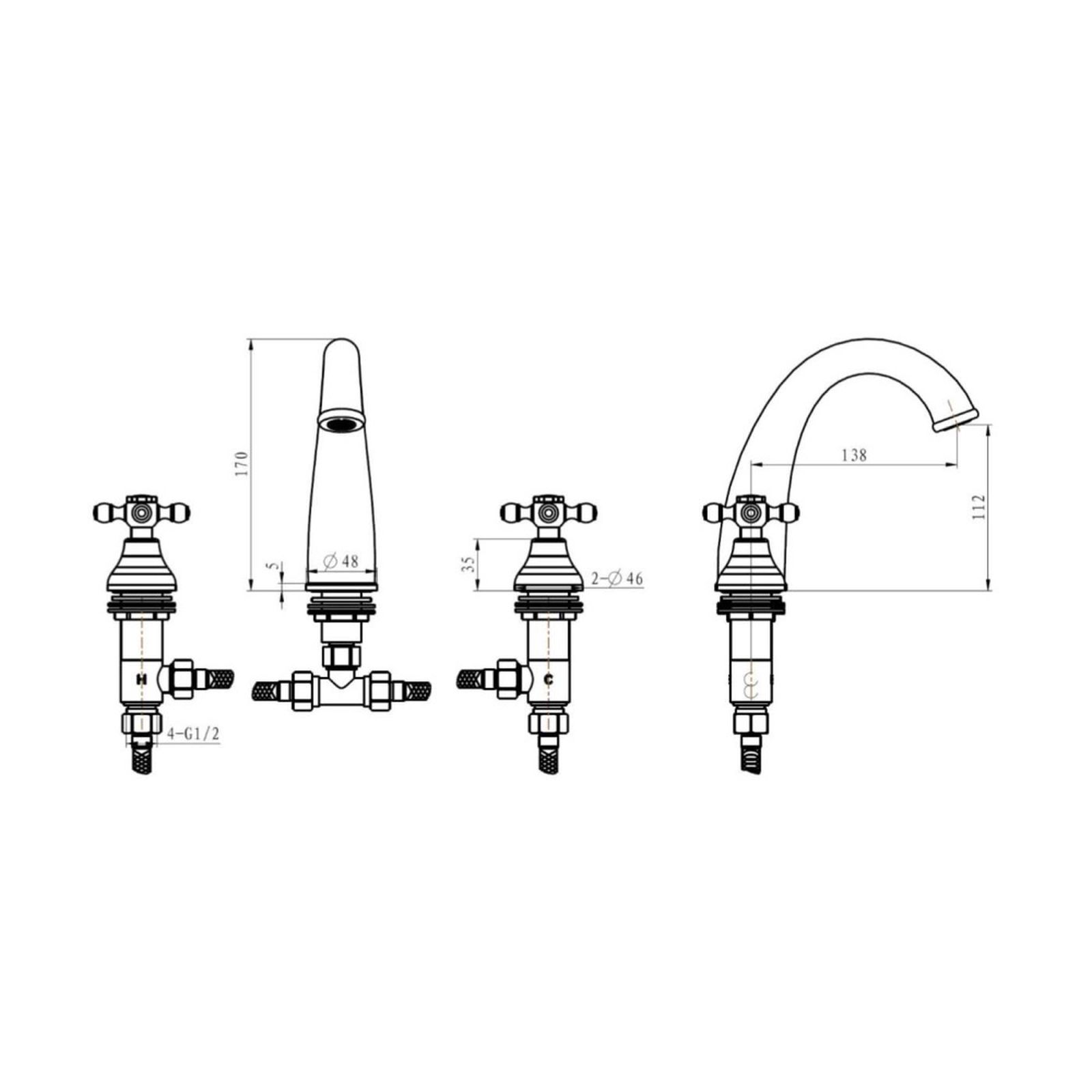 Смеситель Boheme Tradizionale oro 297-SW для раковины, золото/Swarovski Комплект поставки: - смеситель, - гибкая подводка G1/2, - крепежный комплект