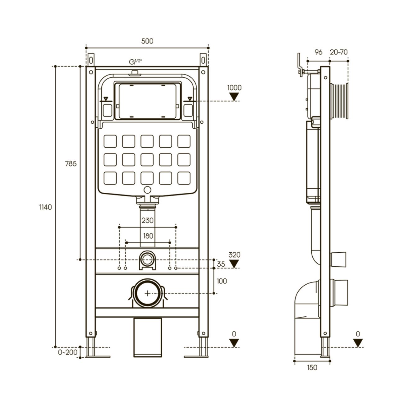 Система инсталляции: Цельнолитой бачок, 2 режима смыва с регулировкой объема, подвод воды сверху, защита от конденсата, звукоизоляция, оциокованные опоры с регулировкой высоты, нагрузка до 400 кг.