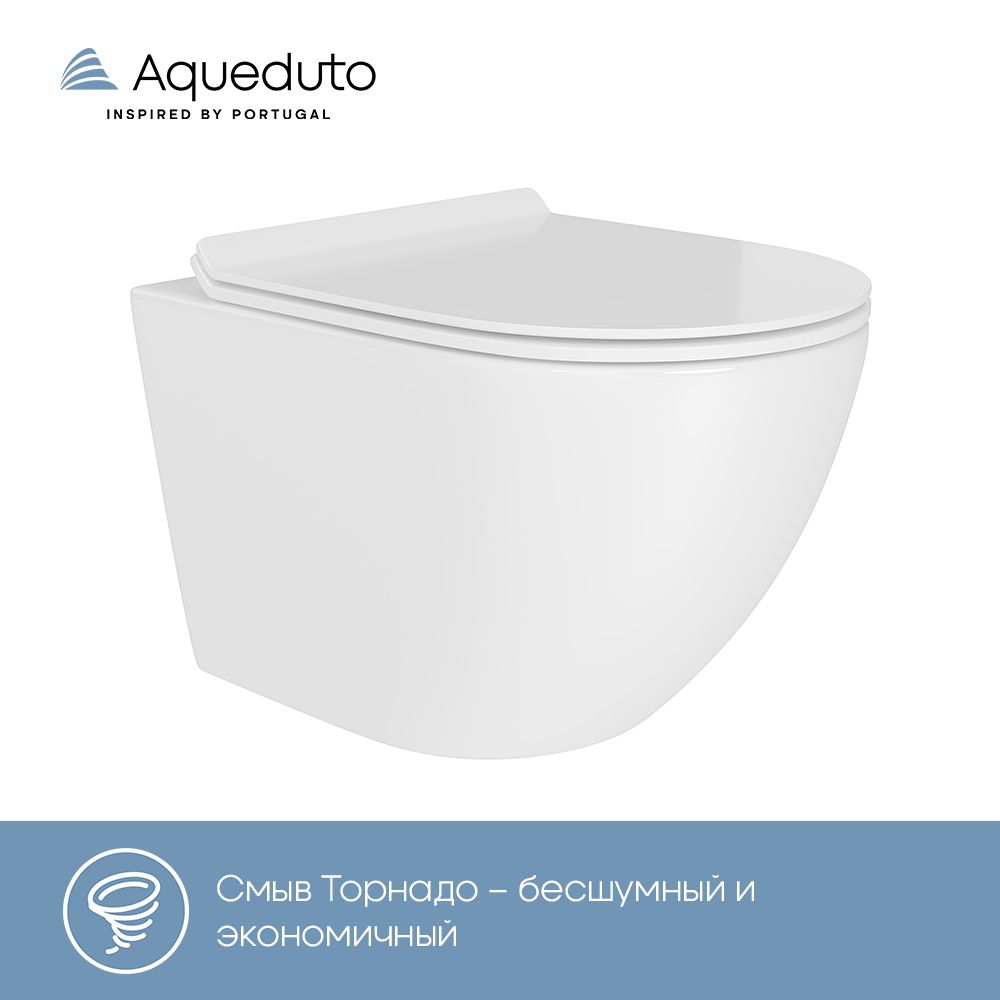 Унитаз: Безободковая чаша, ультратонкое, быстросъемное сиденье из дюропласта с функцией плавного закрывания (микролифт), антигрязевое покрытие, устойчивость к царапинам, смыв Tornado, экономия воды.