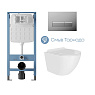 AQDSD008 Aqueduto комплект: TECNICA Novo Система инсталляции для подвесного унитаза, RETANGULO Novo Панель смыва, хром, OVO Tornado Daily Унитаз подвесной 490*360 безободковый, Tornado, сиденье с микролифтом, белый глянцевый