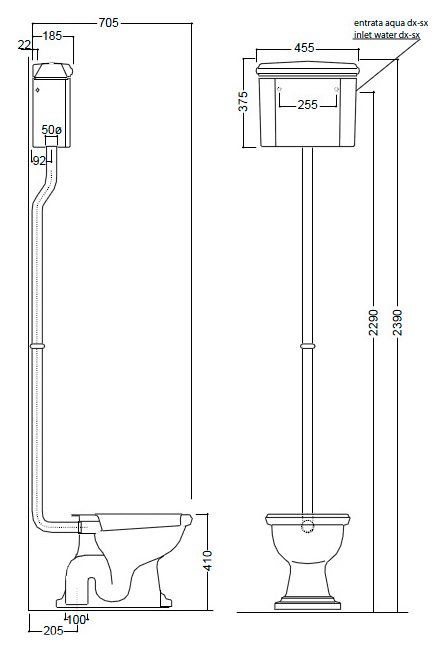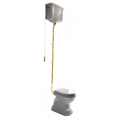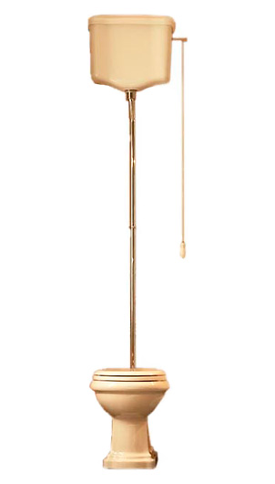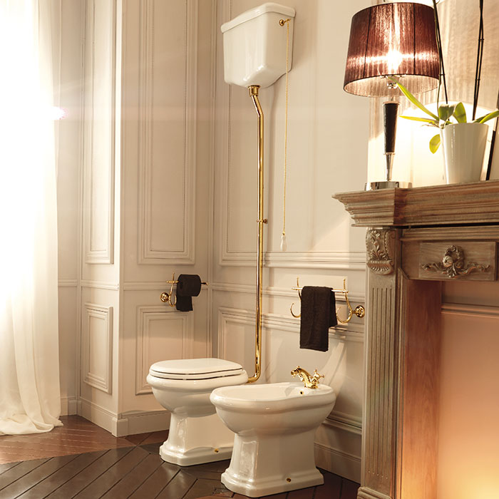Унитаз Kerasan Retro 101001 с высоким бачком, вертикальный выпуск, фурнитура золото