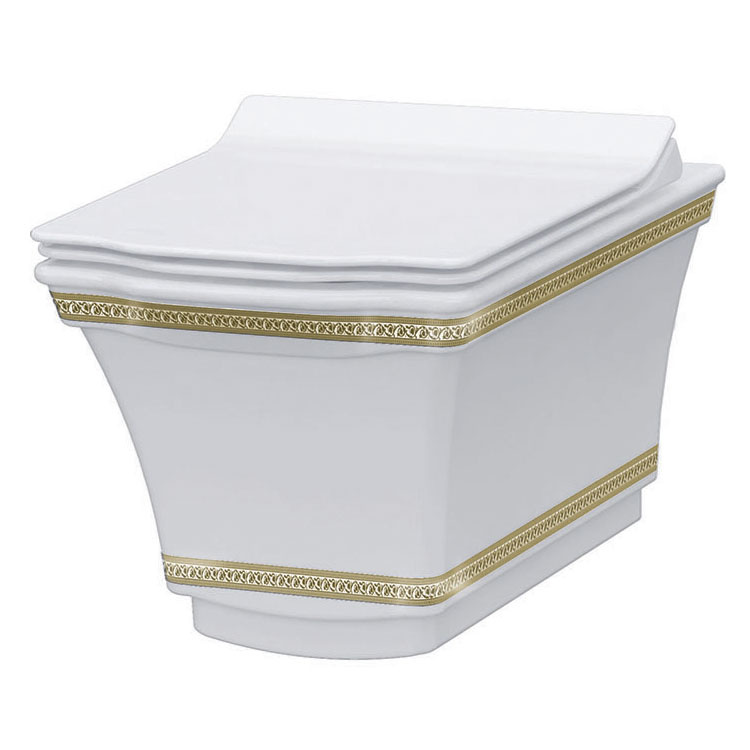 Унитаз подвесной Boheme Hermitage 951-G Gold безободковый, белый, узор золото